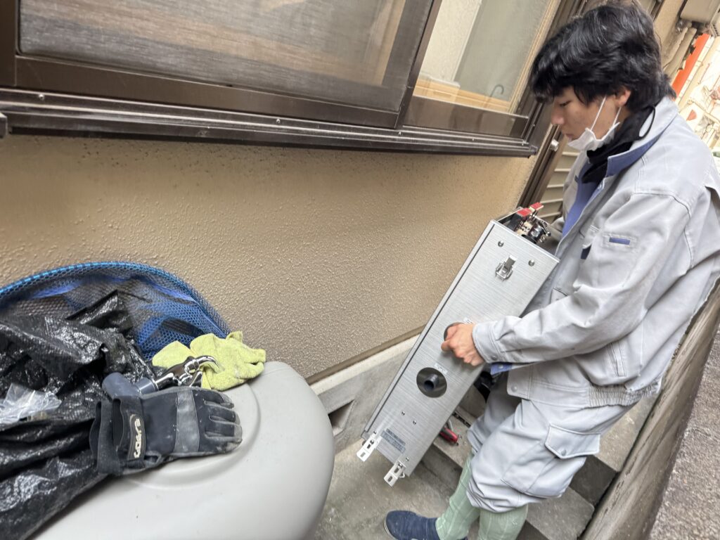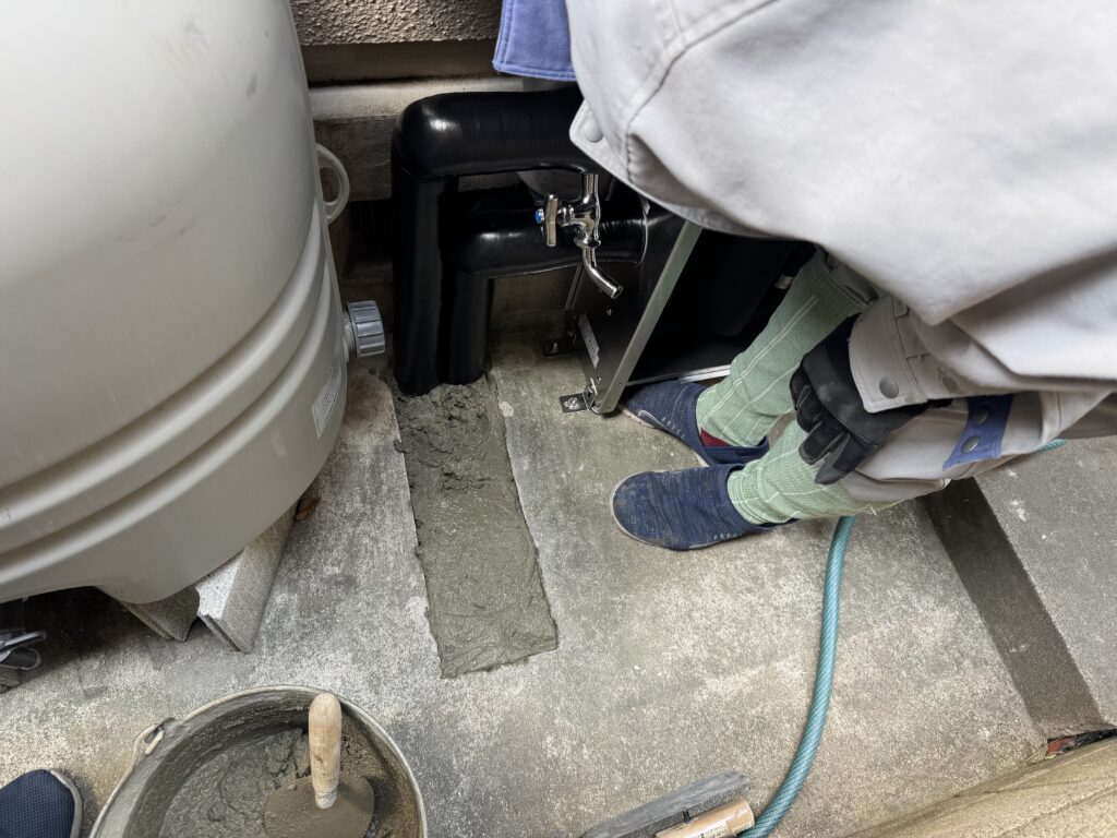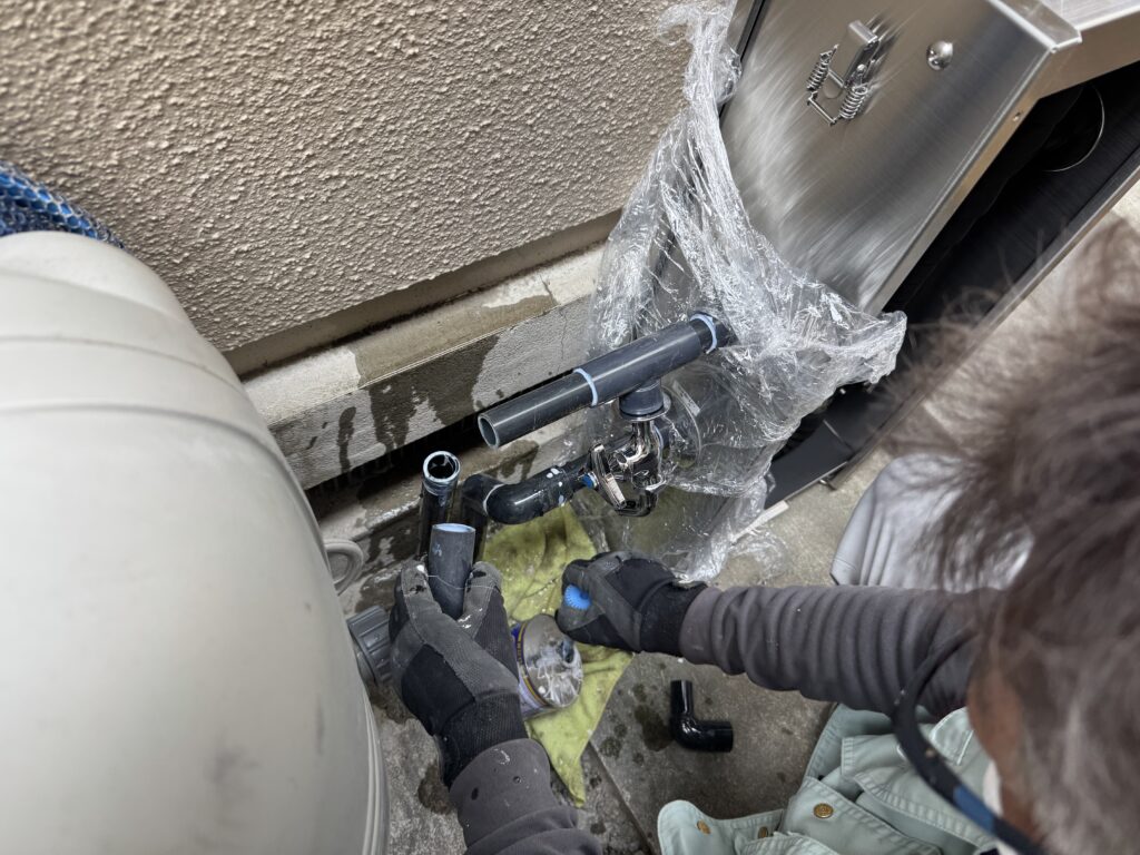 1階のメーターをゆっくり開けて、切断した配管からお水が出ればOKです。