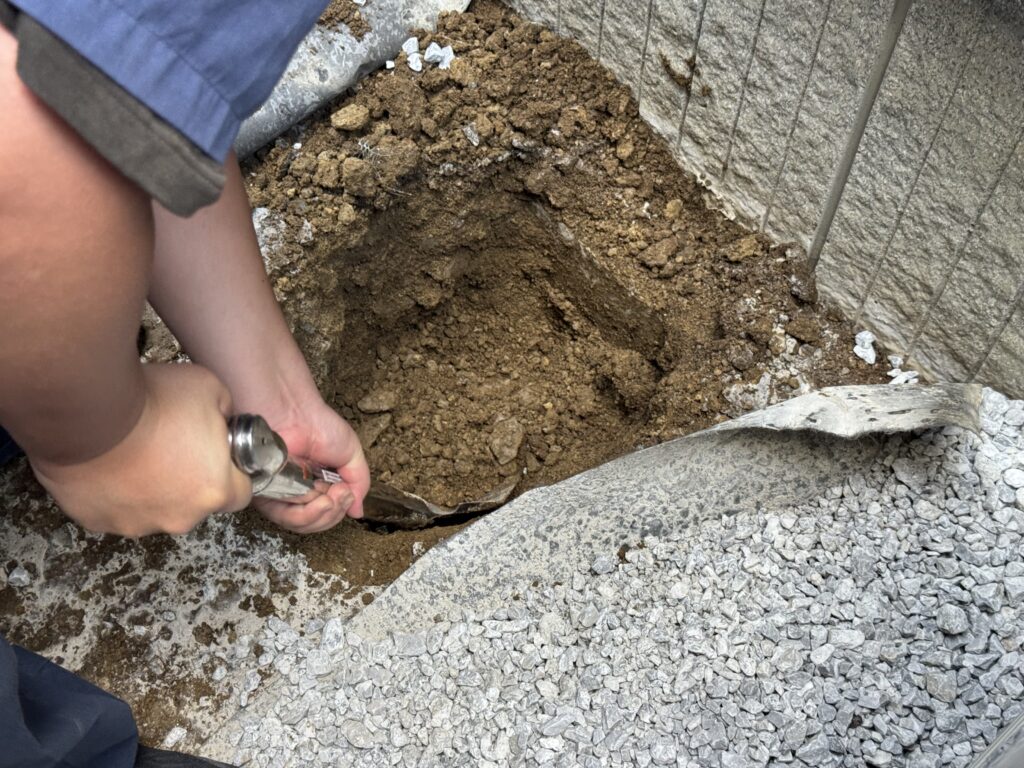 土の硬さに毎回ばらつきがありますが、このご自宅はかなり固く、一苦労でした。