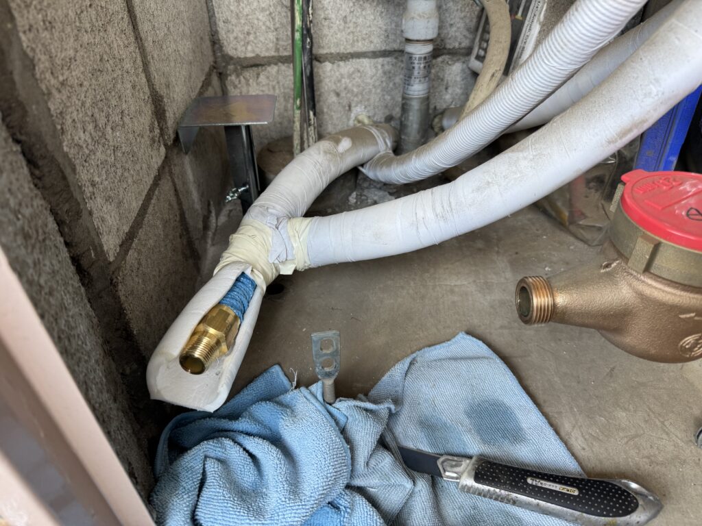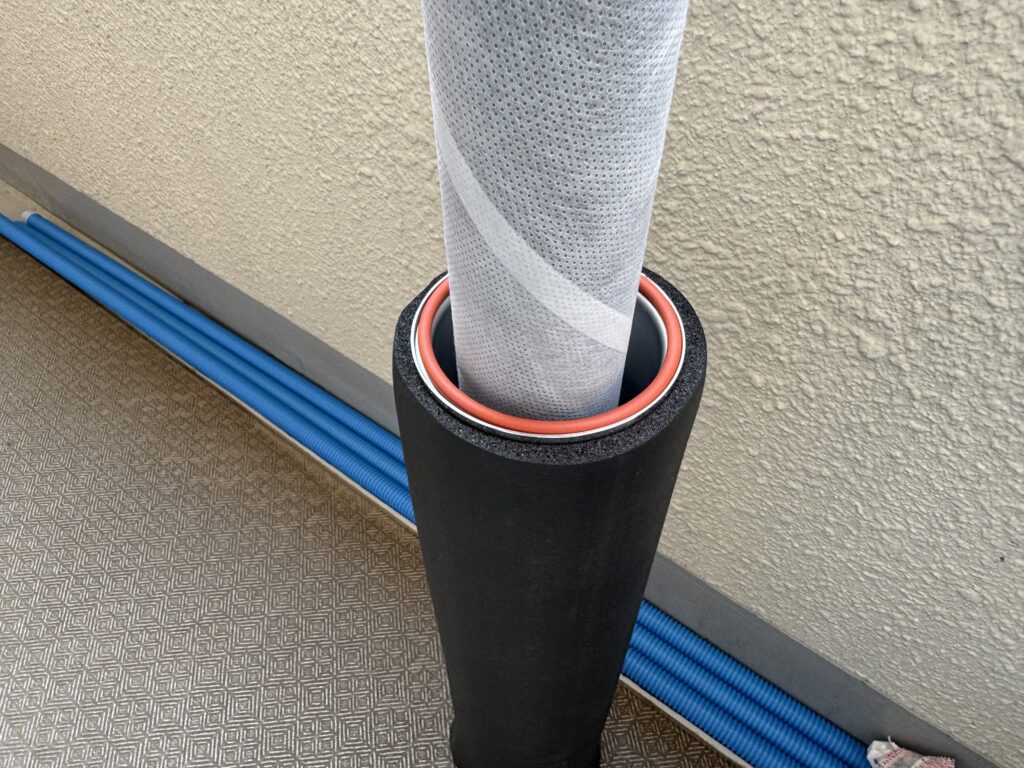 配管の保温材がその上からキャンバステープなどで巻かれていないため