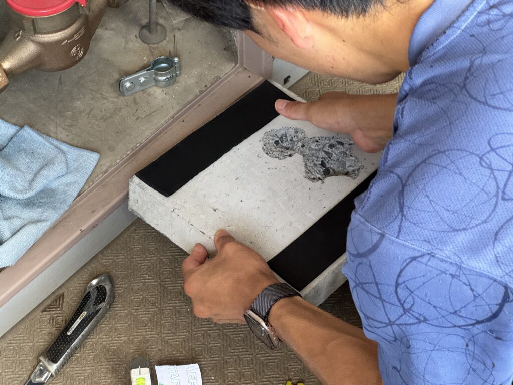 PS内の壁に穴あけは許可が下りなかったため、 今回は自立型での設置のため、250mmのコンクリート板 を使用します。