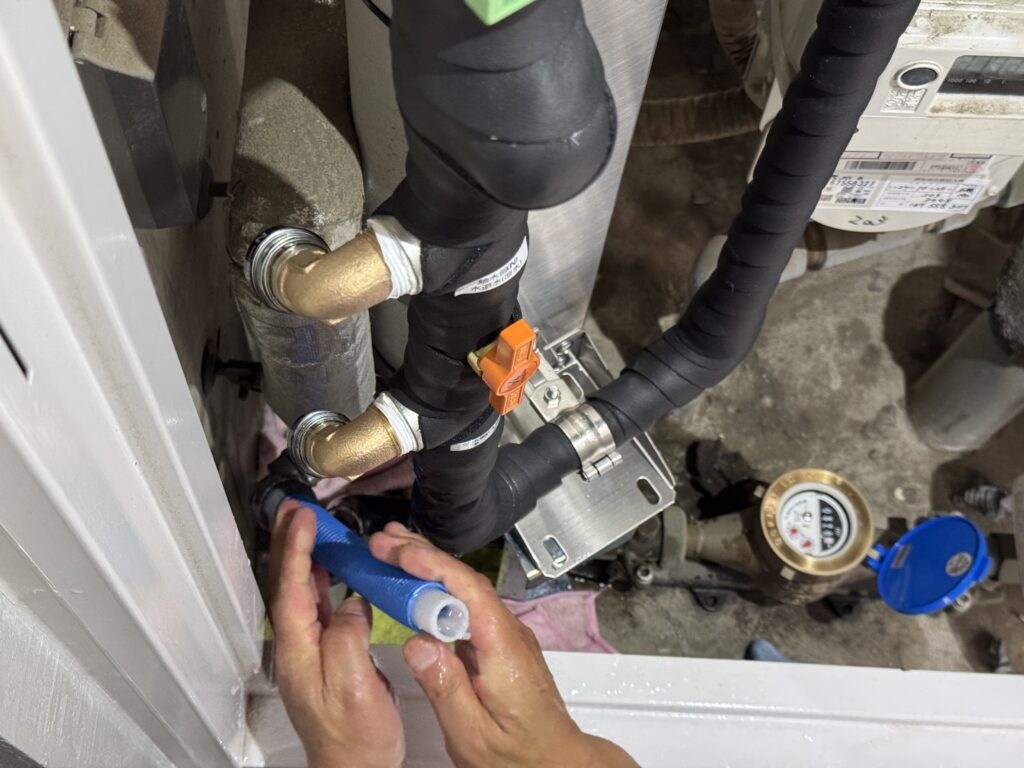 メーター台を使い、浄水器の高さ上げを行います。