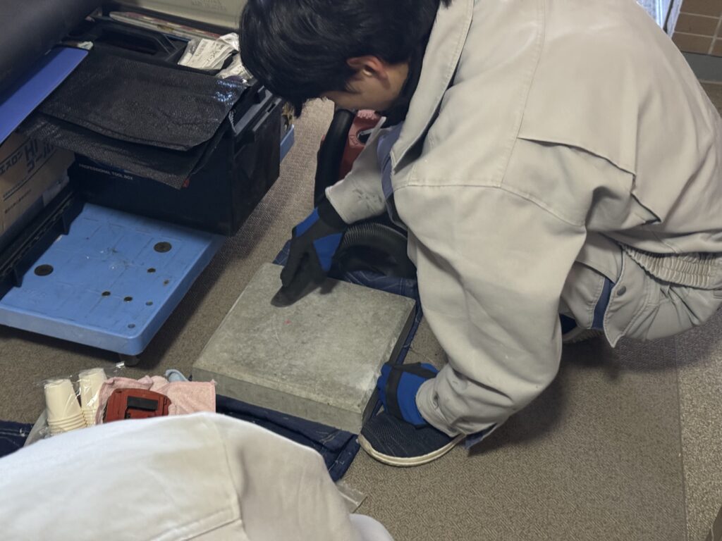 穴あけ位置を決めたら、騒音でご迷惑にならないよう、 一度マンションを出て作業を行います。