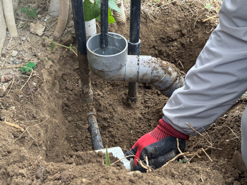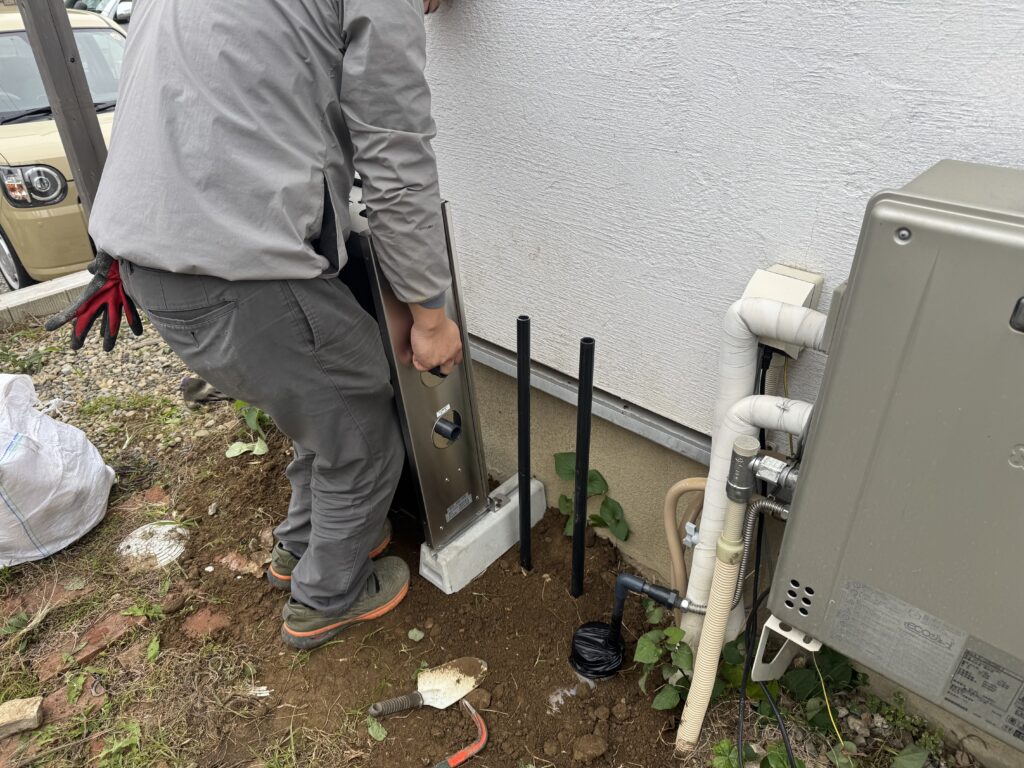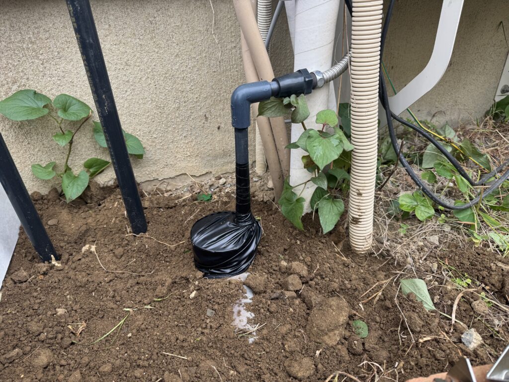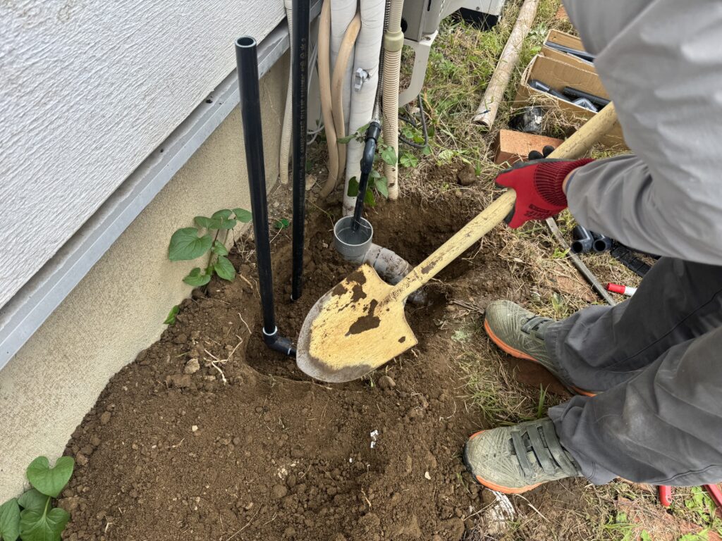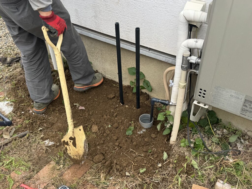 位置的に難しかったため、地中部分から切断して配管しなおす事に。