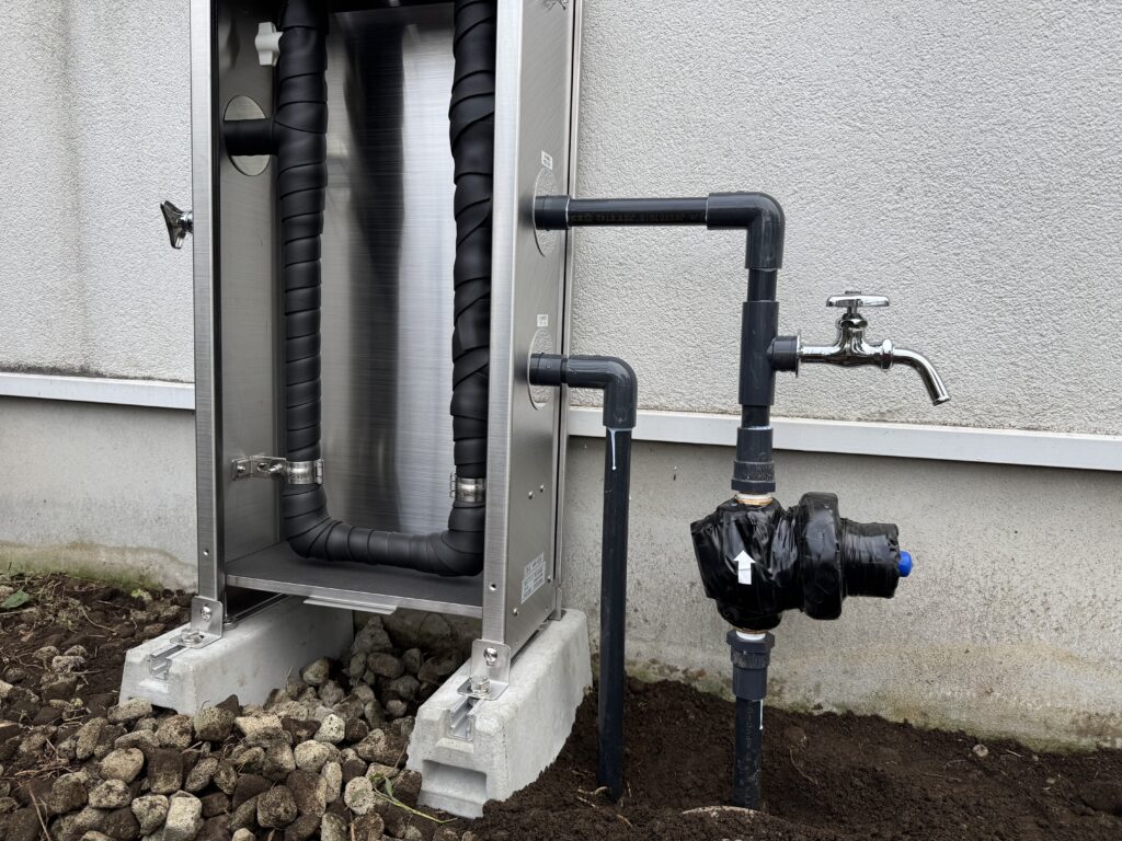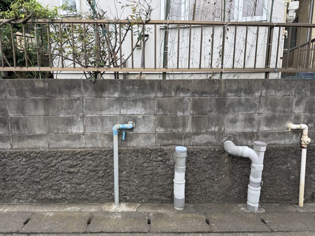 道路面に給水管や排水管が伸びていますね。