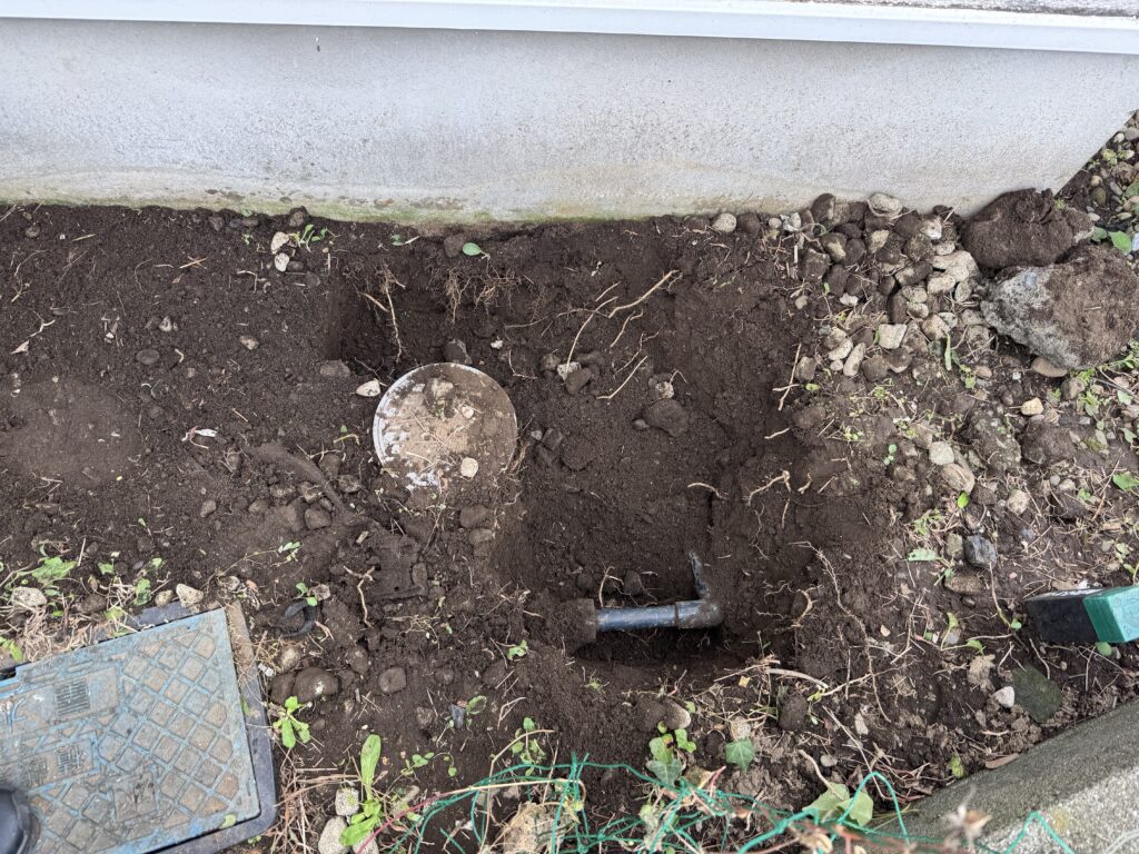 水道メータの延長上を掘り進めて行くと配管が出てきました。