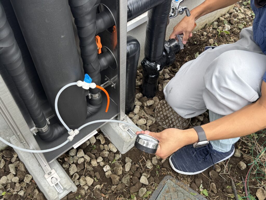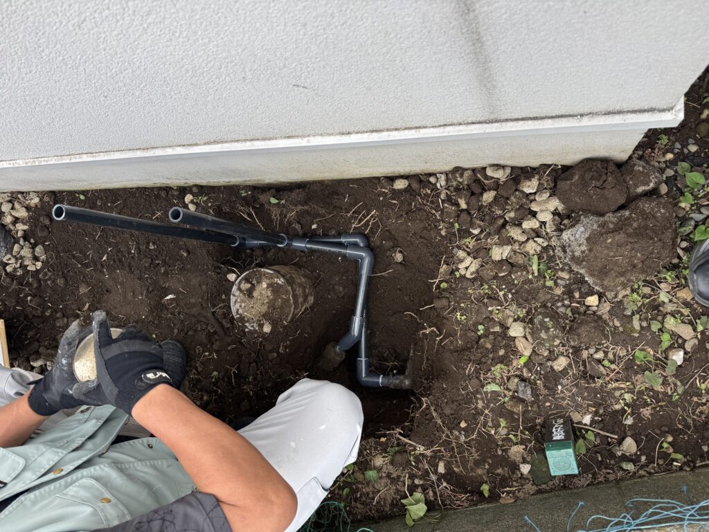 ここを掘り出してそのまま配管と浄水器本体を繋げていきます。