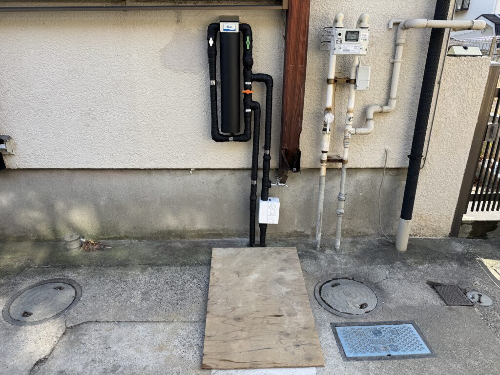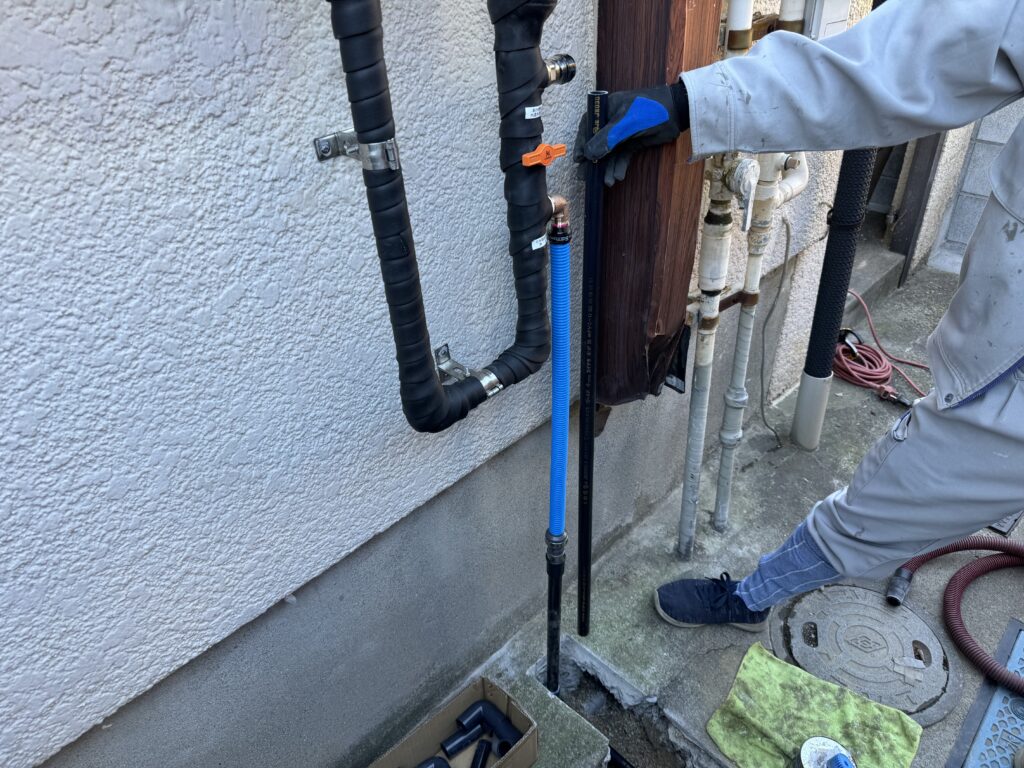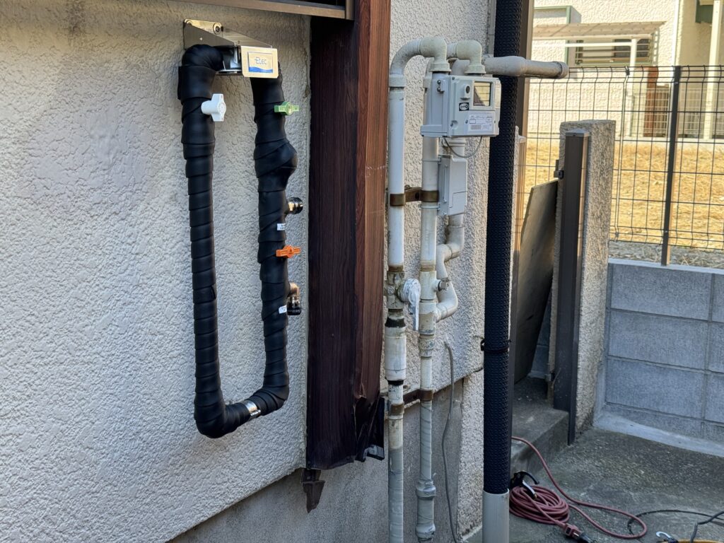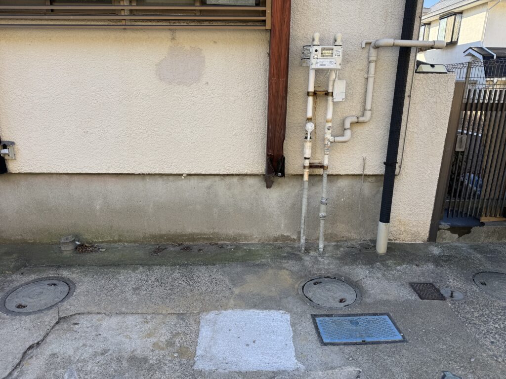 そのため、水道メーターの真横から壁に到着するまでの範囲を