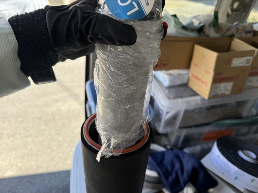 全て終えてから配管を保温していきます。