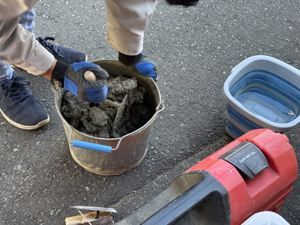 モルタルを流し込み、綺麗に正確に復旧します。