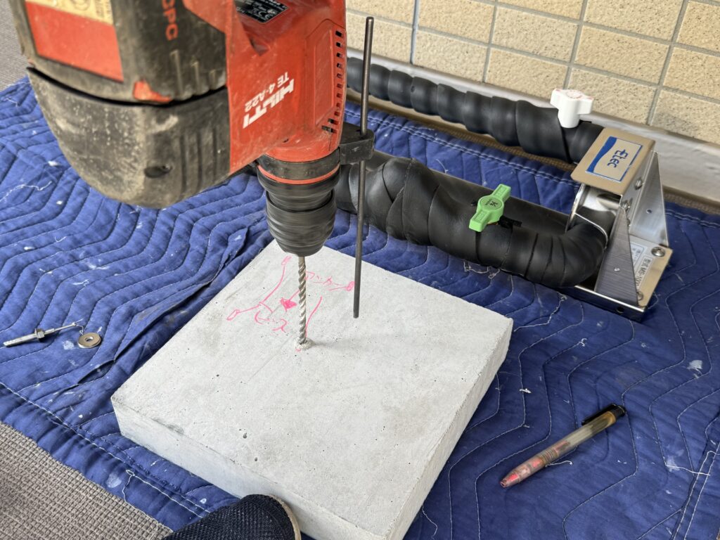アンカーとコンクリビスを使い分け、本体がしっかり固定できるようにします。