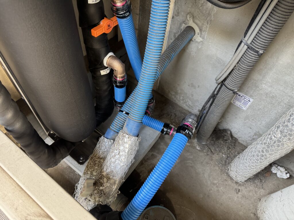 かなり近い場所での配管回しでしたが、何とか接続できました。