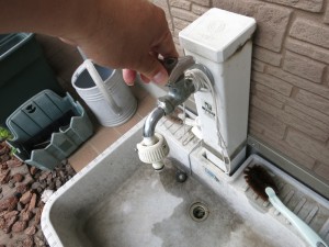 水が出ないので、この散水栓も浄水になります。これで、庭の草花にもいい水が使えますね。