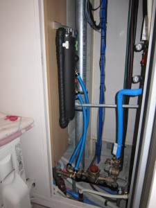エコキュートと板の間には少し隙間をあけたので、浄水器のねじもうまく入りました。