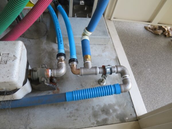 元の鉄の配管を取り外しステンレス製に取り替えました。分岐した配管を浄水器につないでからテストしていきます。