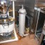 持参したコンクリートブロックに浄水器を固定し、配管を接続。
