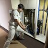 この後浄水器を乗せ、足を固定し、立ち上げた配管と接続していきます。