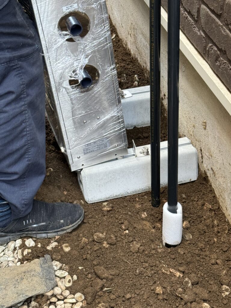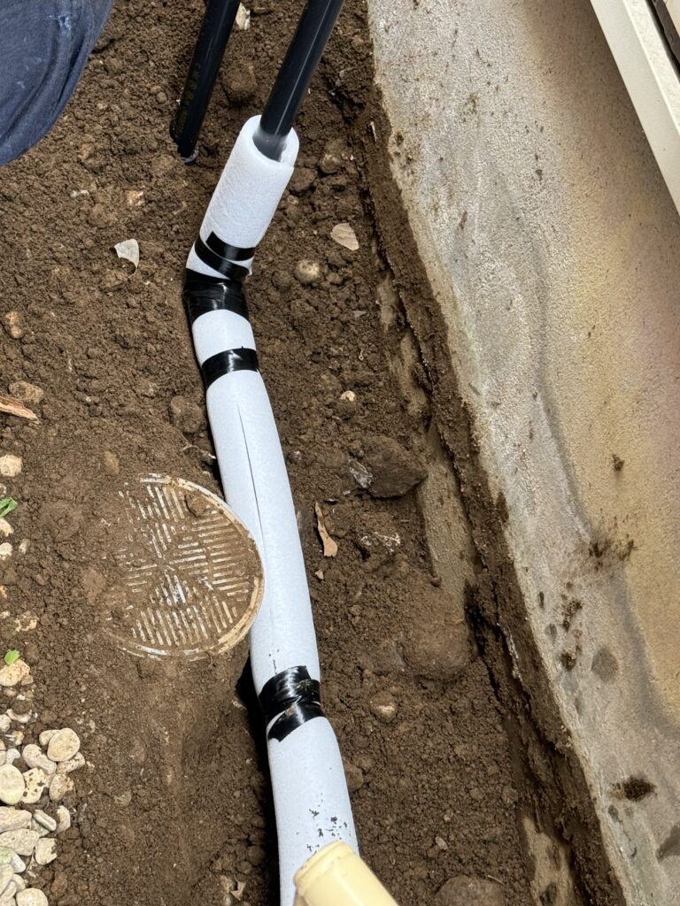 普段は中々やりませんが、地中の浅い部分にも保温材を巻いています。