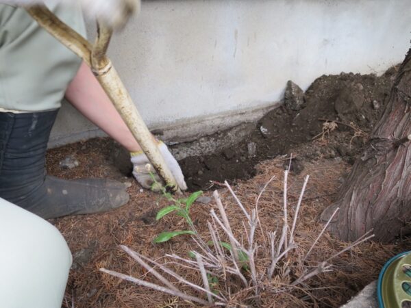 配管を探しつつ、設置予定場所まで掘り進めます。